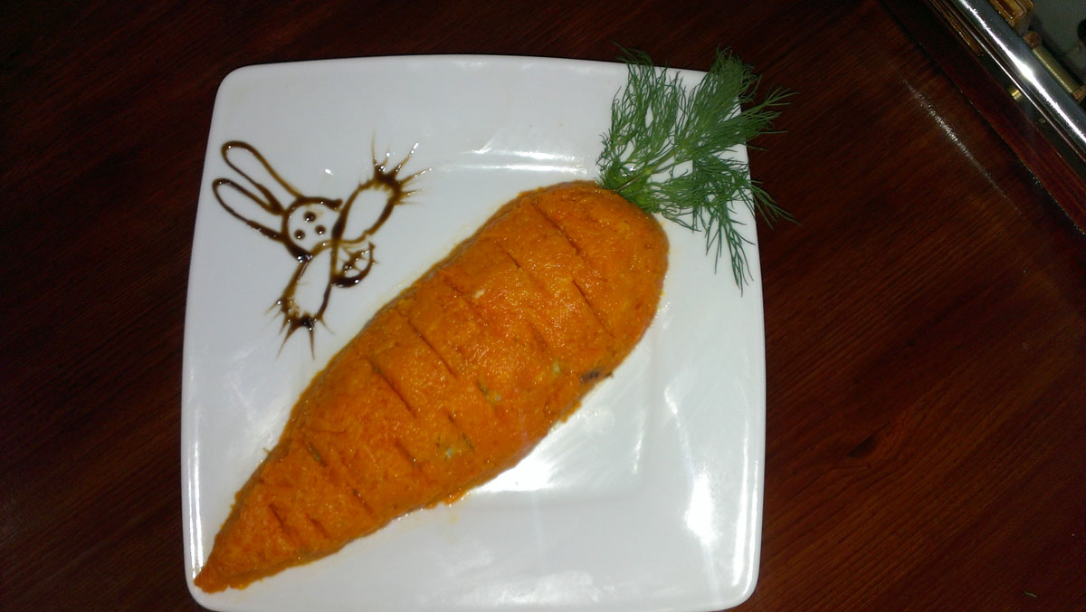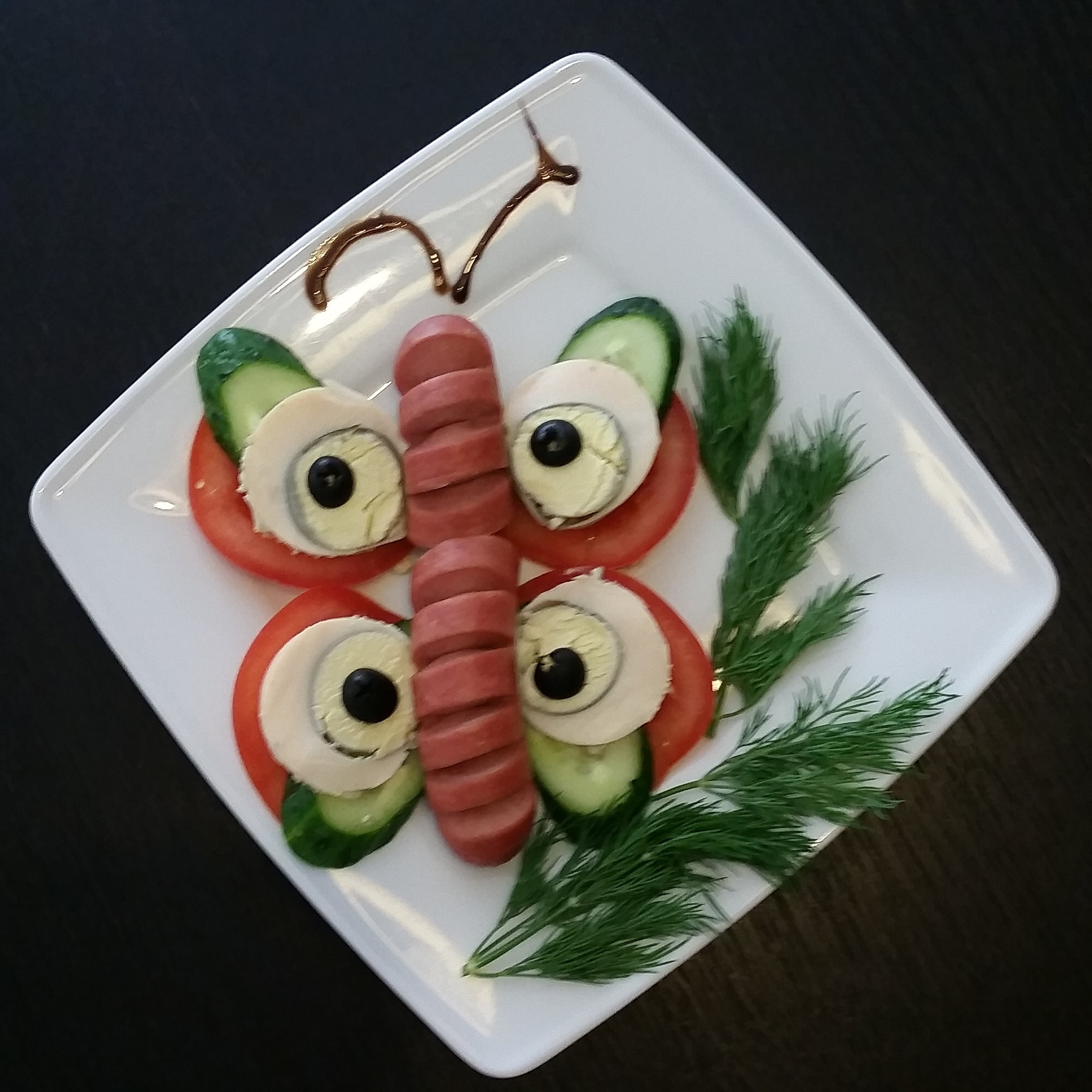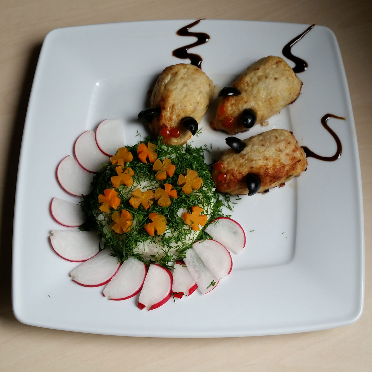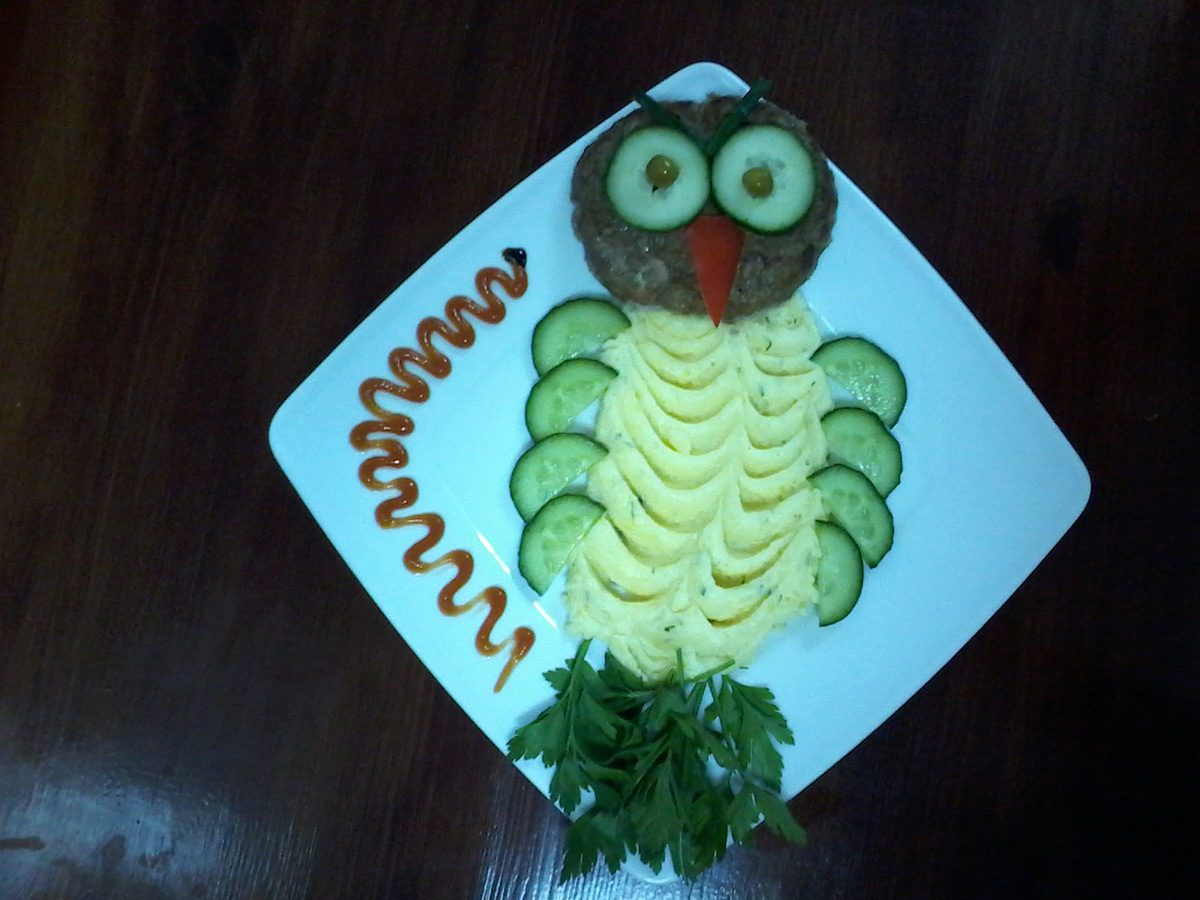 Любимый герой анимации в исполнении из отварных сосисок и гарнира на Ваш выбор