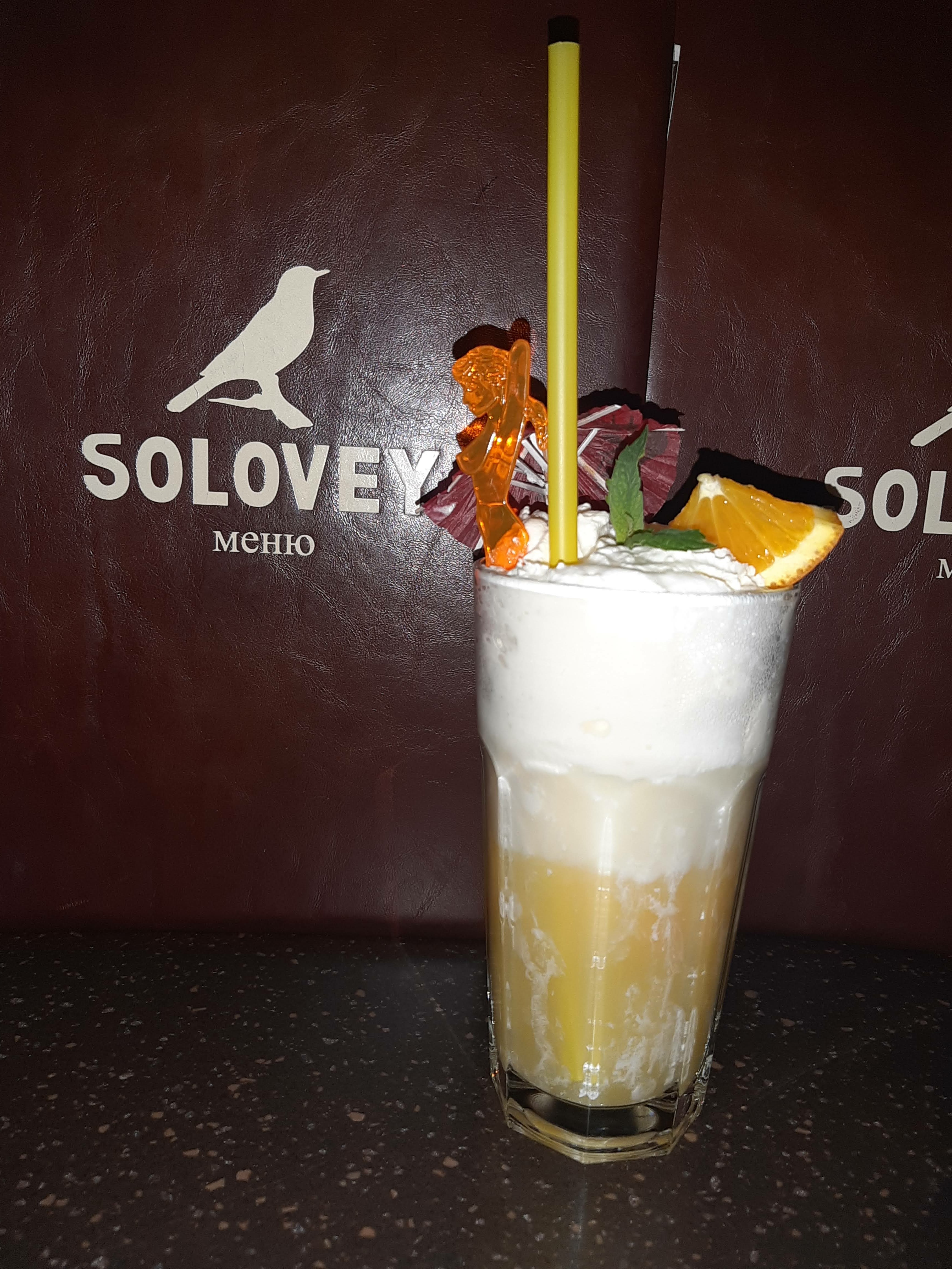 сок яблочный, сироп ананасовый, сироп кокос, сливки, взбитые сливки