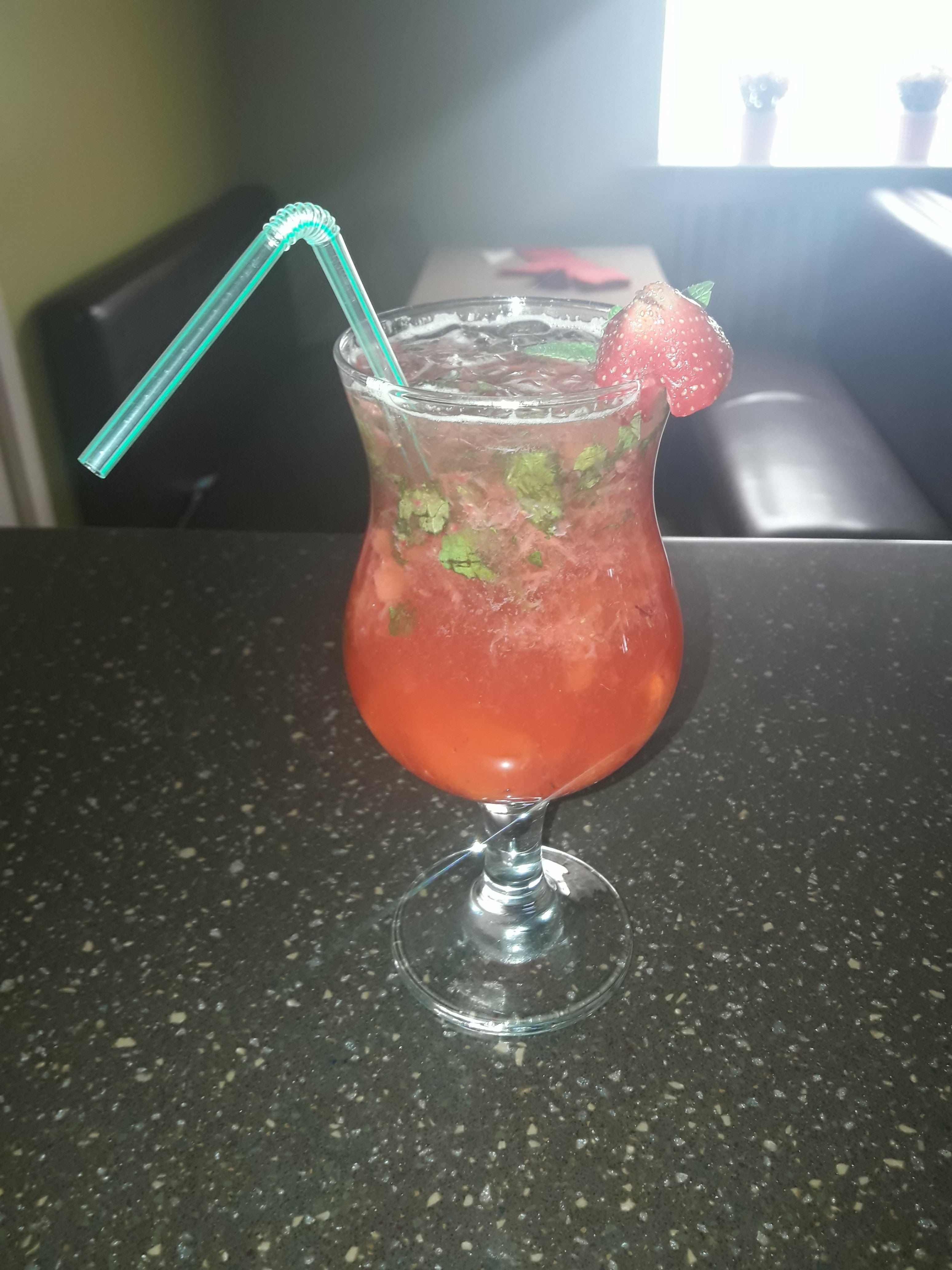 клубника, мята, лайм, спрайт, клубничный сироп