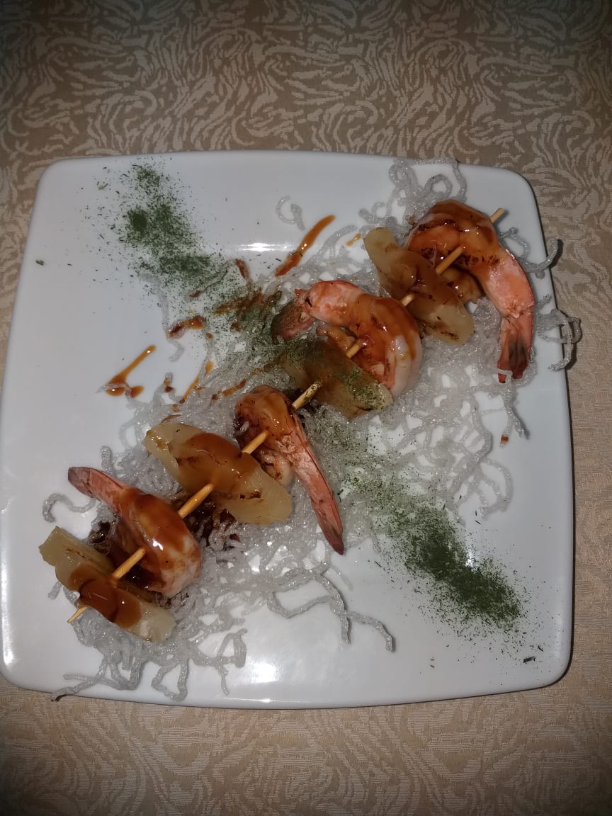 с жареным ананасом на воздушной фунчозе