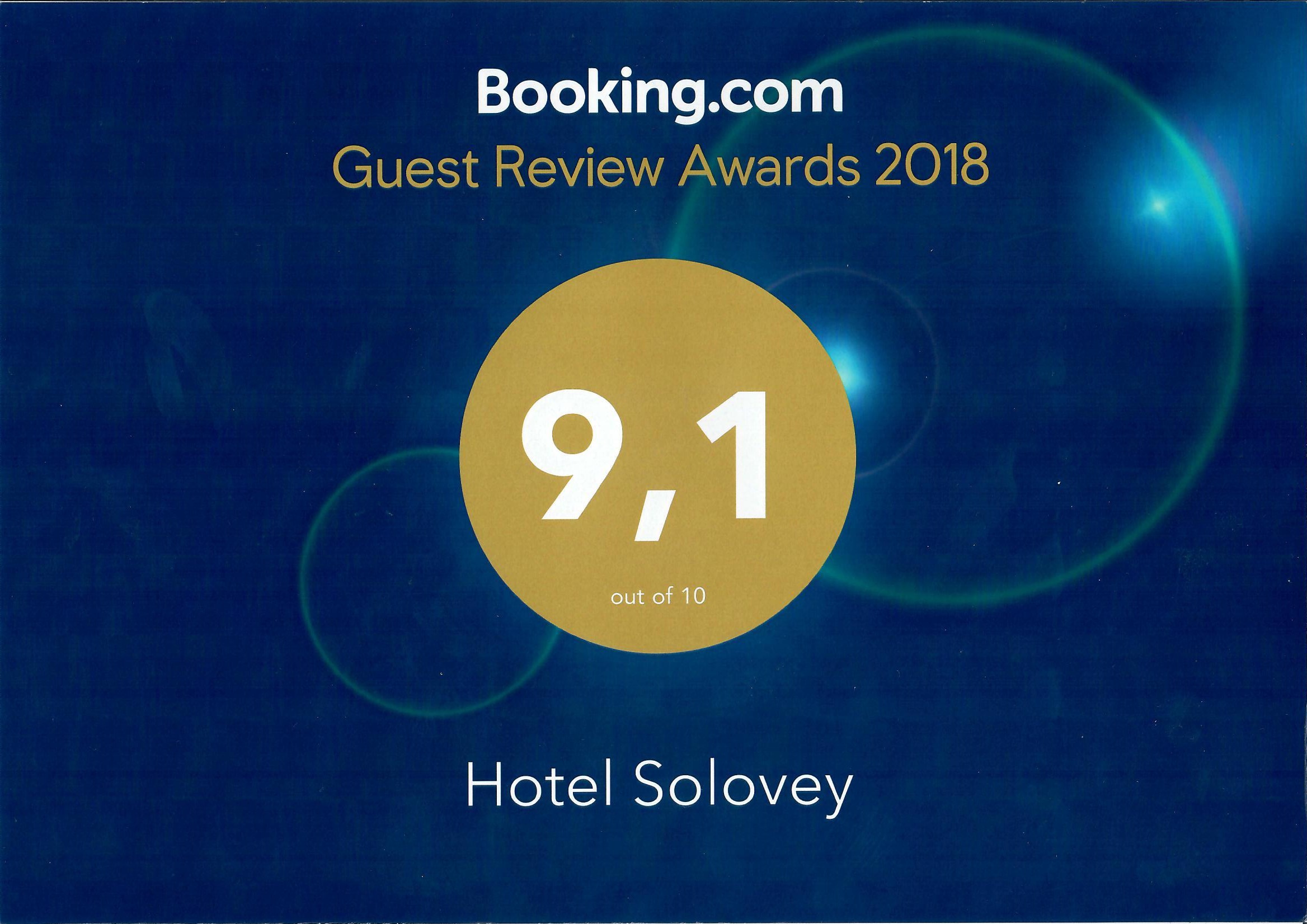 В 2018 году гостиница "Solovey" получила награду "Guest Review Awords 2018" от известной системы бронирования Booking.com! Гостинице по отзывам гостей пресуждена оценка 9,1 балл из 10 возможных !