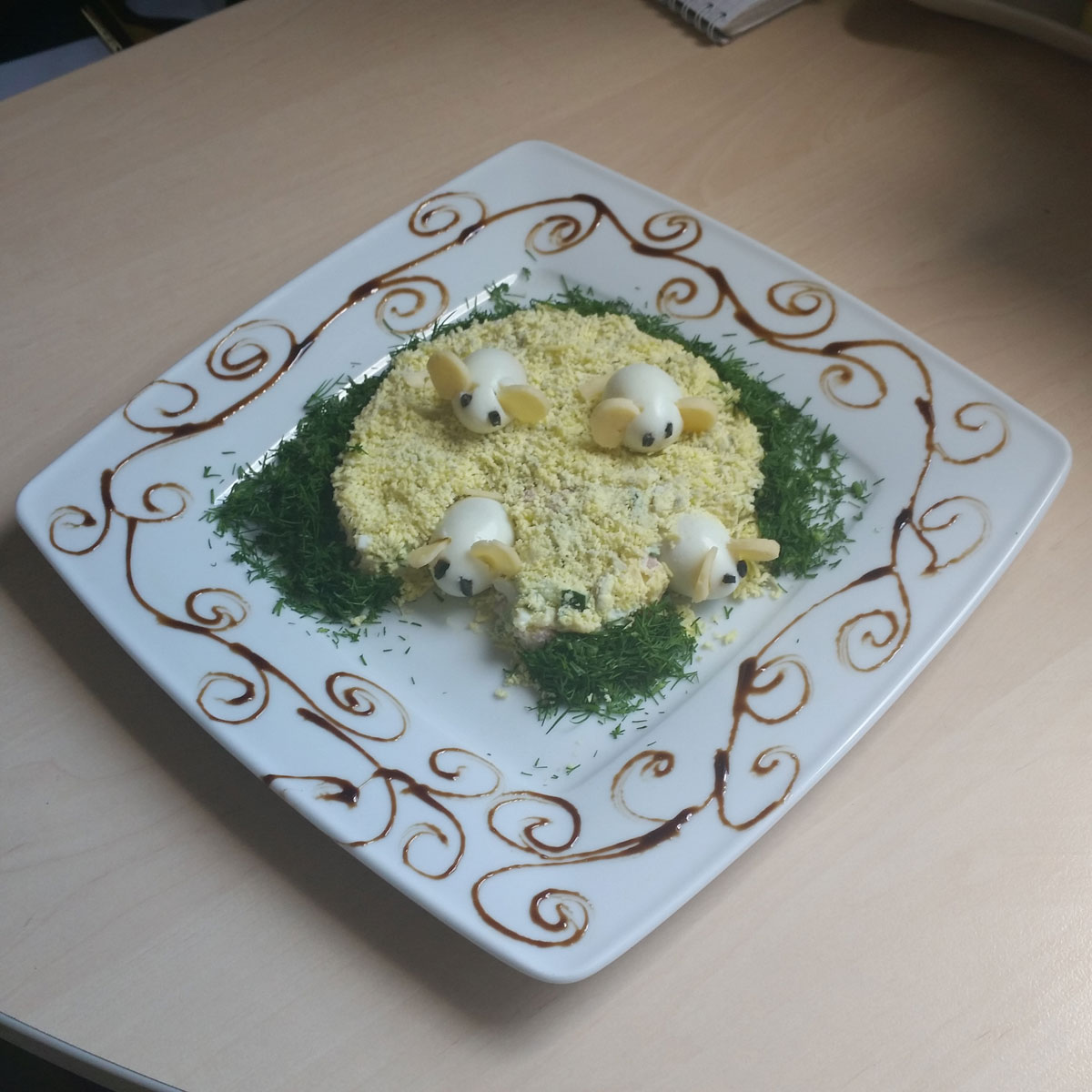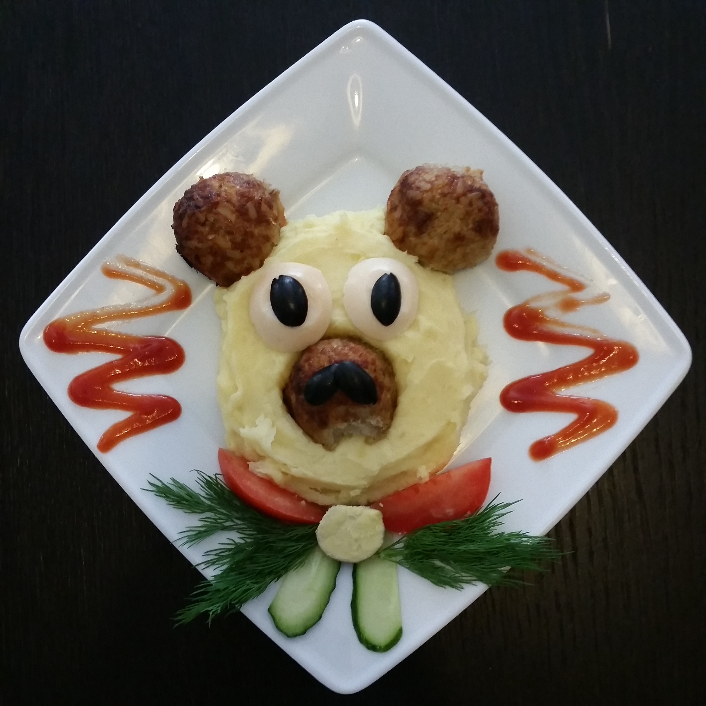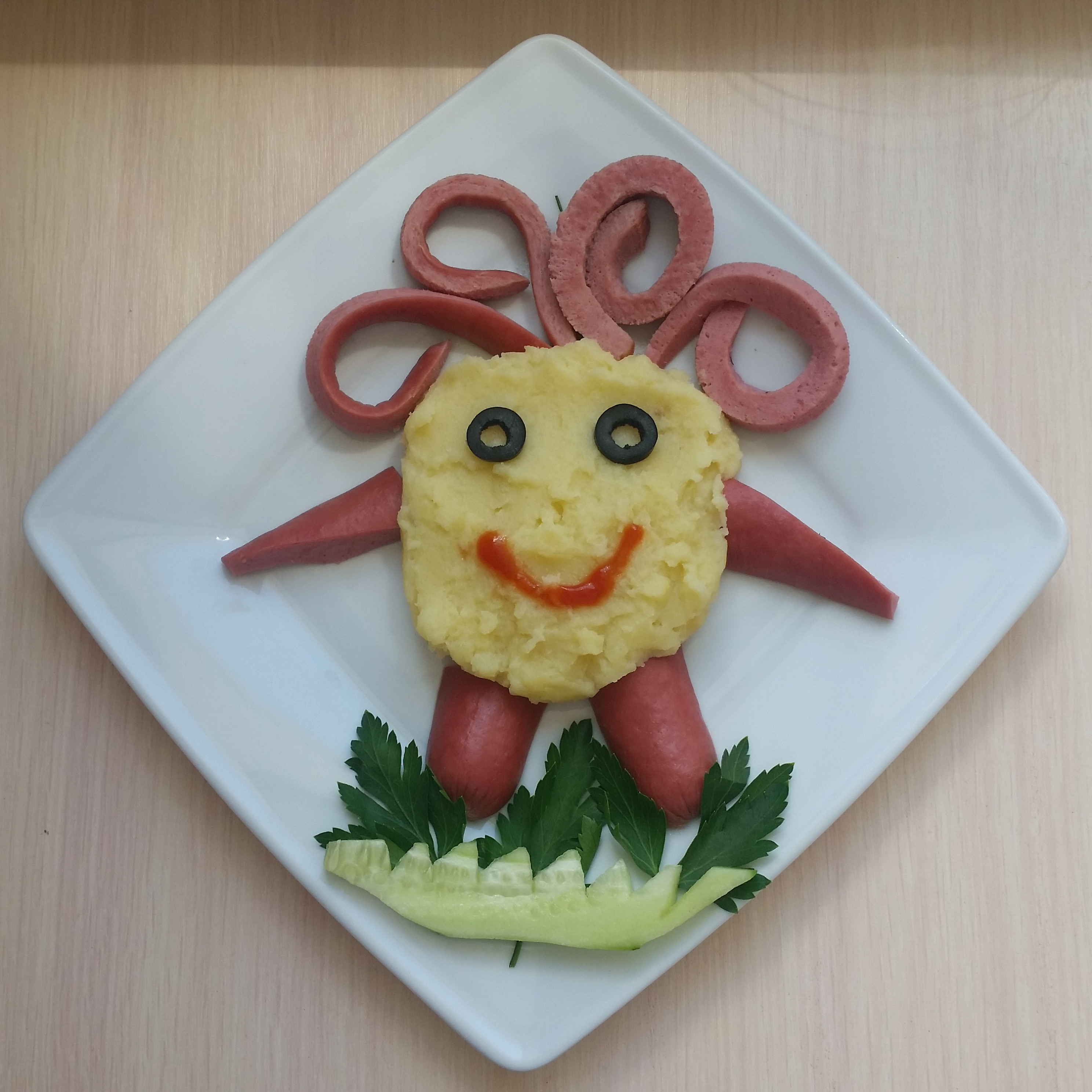 Любимый герой анимации в исполнении из отварных сосисок и гарнира на Ваш выбор