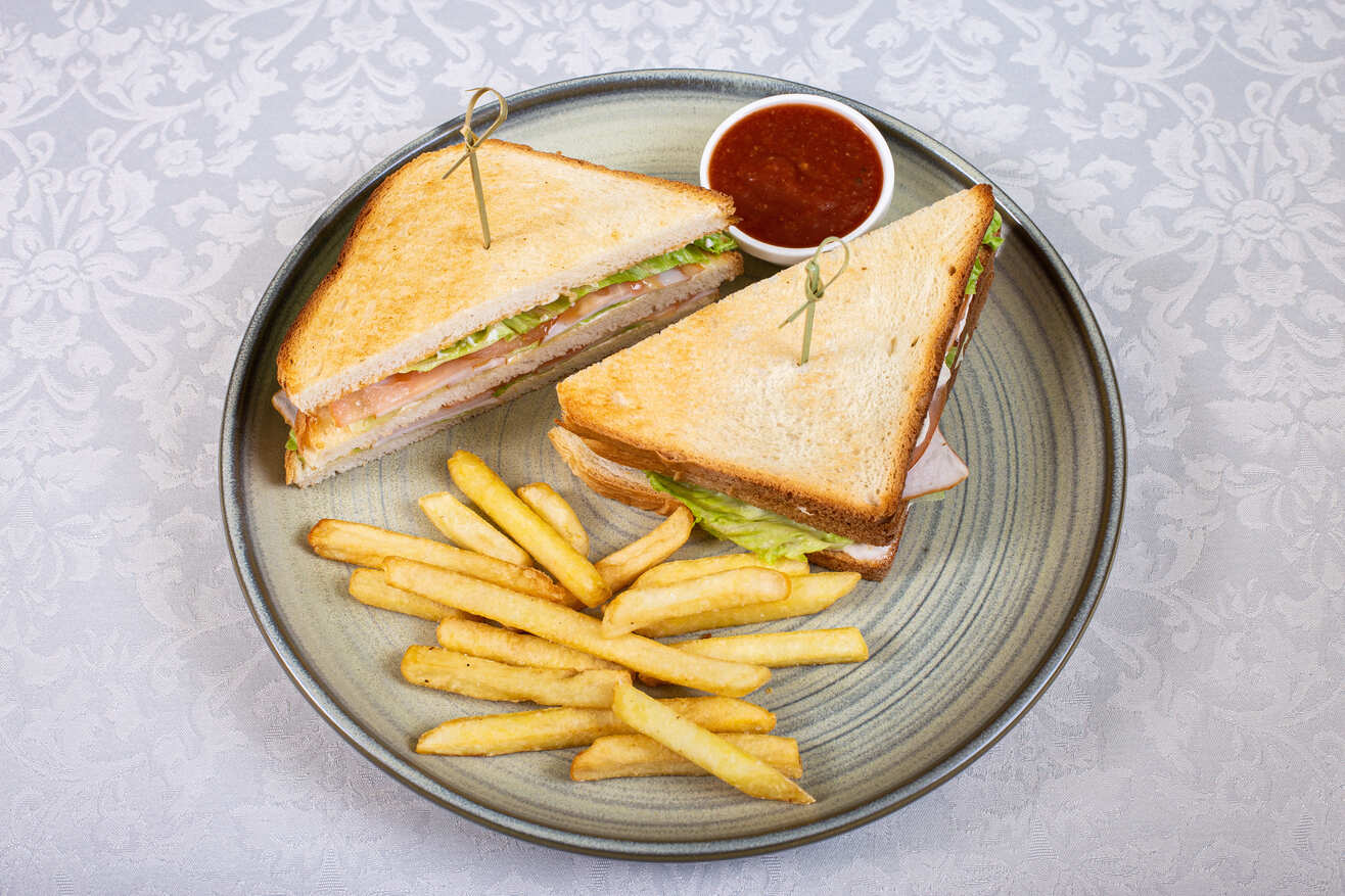 Классический сэндвич – «Харрис» с картофелем фри, карбонатом в/к и томатным соусом