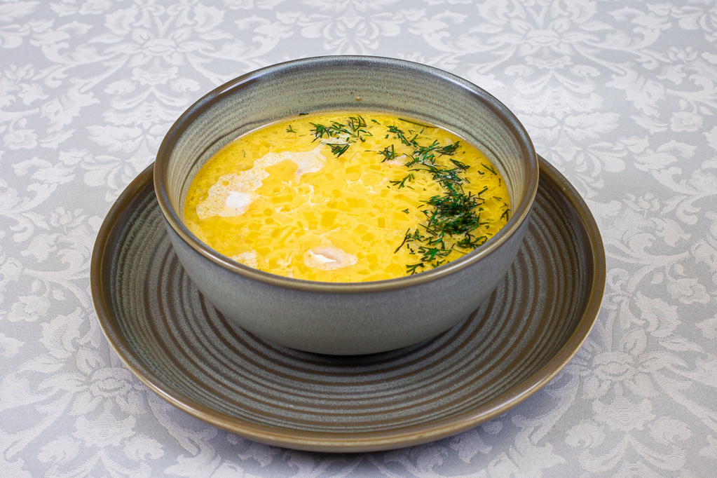 Солянка из мясного ассорти - говяжьего языка, копченых карбоната, бекона, колбас - подается со сметаной